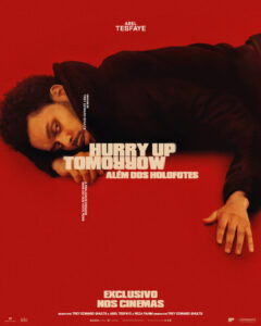 A Paris Filmes acaba de divulgar três novos cartazes de “Hurry Up Tomorrow: Além dos Holofotes” (Hurry Up Tomorrow), filme baseado no último álbum de The Weeknd que estreia em 15 de maio nos cinemas. As imagens destacam Abel Tesfaye, Jenna Ortega e Barry Keoghan.