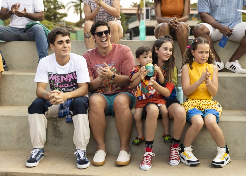 Os filhos do casal são vividos por Xande Valois, Isabella Alelaf, Lara Infante, Caio e Pedro Costa, trazendo leveza e vitalidade às cenas. O elenco jovem tem participação constante na narrativa, contribuindo para momentos inesperados e bastante divertidos, com situações nas quais qualquer família pode se reconhecer.