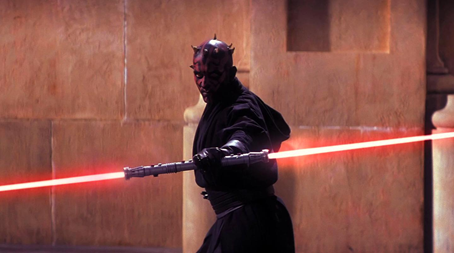 Lembrado como um dos maiores combates da saga, o duelo destaca o poder de Darth Maul, que enfrenta dois Jedi sozinho, utilizando seu icônico sabre de luz duplo. Após matar Qui-Gon, o Sith acabou derrotado por Obi-Wan, que o partiu ao meio e o jogou no fosso de um reator. Dramática e memorável, essa conclusão fez uma geração de fãs acreditar que esse era o fim do vilão. Porém, ele voltou para espalhar caos e medo pela galáxia.